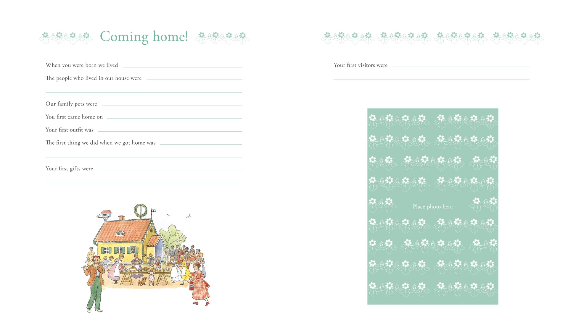 Celebrate the latest addition to the family with this beautiful baby memory and record book, illustrated throughout with vintage artwork.- This TIMELESS design features NOSTALGIC VINTAGE ILLUSTRATIONS from the picture books of Elsa Beskow, the Swedish Beatrix Potter - Record important moments from BEFORE BIRTH UNTIL 5 YEARS OLD (sections include The Happy News, Your Family, Coming Home, How You Grew, Your Hand and Footprints, Your Friends, Let's Eat, Your Day, Chatter, Travel and Celebrations) - PERFECT FOR ALL FAMILY TYPES and pregnancies with a GENDER-NEUTRAL design and universal wording - EASY TO COMPLETE, thoughtful and open prompts to help parents to record their baby's unique story in their own words - Space for OVER 30 PRECIOUS PHOTOGRAPHS to capture important moments - including coming home, first bath, first birthday and first holiday - A luxurious GOLD FOIL-STAMPED COVER and CLOTH BINDING ensure this book will look beautiful on any shelf or coffee table - A LARGE CONCERTINA STORAGE POCKET allows plenty of space to keep treasured keepsakes such as greetings cards and hospital bands - ECO-FRIENDLY product printed on high-quality sustainable paper using plant-based inks - Adorable illustrations from CLASSIC PICTURE BOOKS including Around the Year, Peter in Blueberry Land, Ollie's Ski Trip, Emily and Daisy, Children of the Forest and Woody, Hazel and Little Pip - This FUTURE FAMILY HEIRLOOM will be treasured for a lifetime
